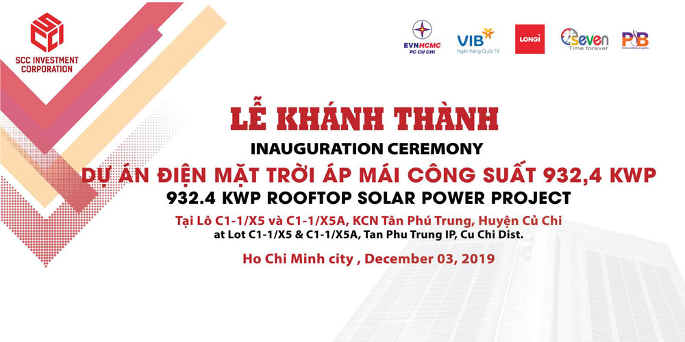 Vào lúc 10:00 giờ sáng nay, ngày 03/12/2019 tại Lô C1-1/X5, đường D4, KCN Tân Phú Trung, huyên Củ Chi, Tp.HCM, Công ty Cổ phần Đầu Tư SCC (SCCI) đã tổ chức buổi Lễ khánh thành Dự án Dự án điện mặt trời áp mái công suất 932,4 kWp.
